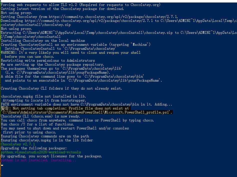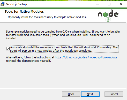 安装Node.js的时候,需要安装一些各种运行组件,以及Python之类的,让它自动装就行