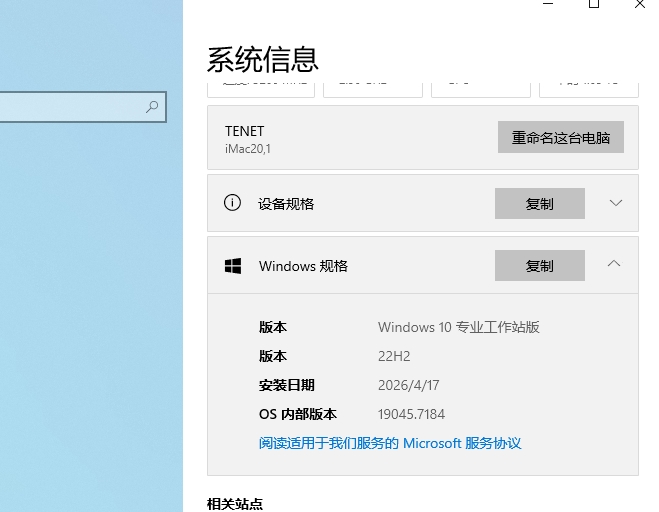 个人自用的系统,使用的 https://www.mfpud.com/topics/15588/ 这里的个人版制作,专业工作站版,安全补丁更新到了2026年4月