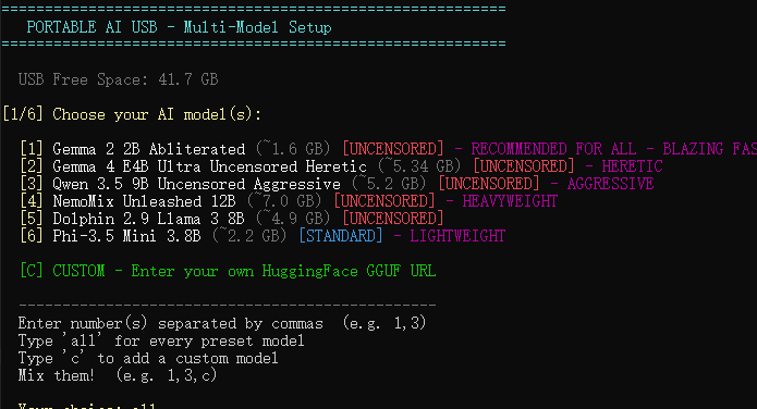 这个开源项目USB-Uncensored-LLM直接把Gemma、Qwen等大模型塞进U盘,插哪台电脑就在哪跑,Win/Mac/Linux全兼容,完全离线,零联网,聊天记录还能持久保存。